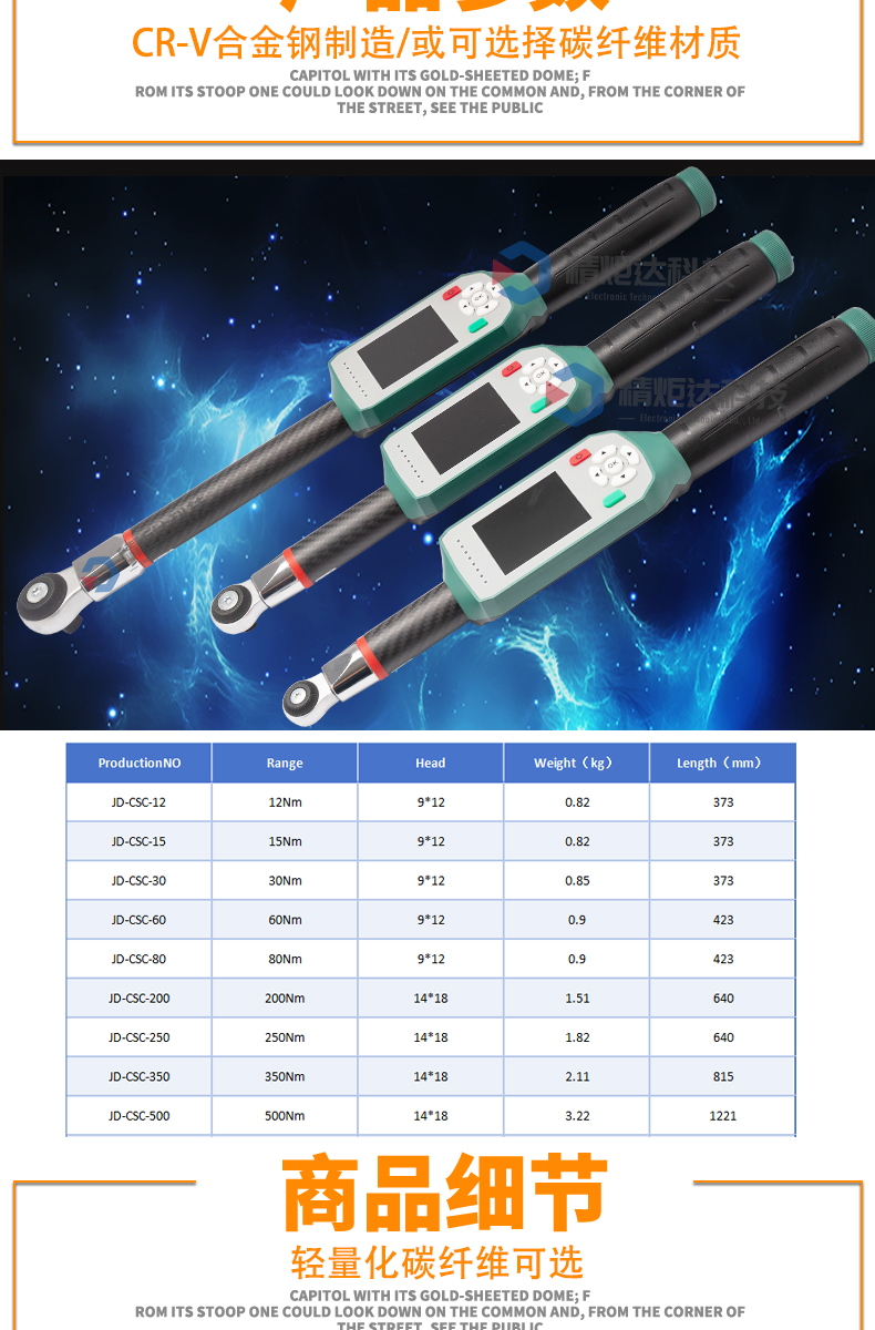 JD-CSC残余扭矩扳手是由成都精炬达厂家生产的,其具备高精度的传感装置,能够准确测量螺栓等连接件在安装后剩余的扭矩力。这对于评估连接件的紧固状态至关重要,可有效避免因扭矩不足或过大导致的松动、损坏等问题。在汽车发动机、底盘等关键部位的螺栓紧固过程中,使用残余扭矩扳手可以确保螺栓达到规定的扭矩值,并检测安装后的残余扭矩,保障汽车的安全性和可靠性。在汽车维修保养时,也可用于检查螺栓的紧固状态,及时发现潜在的安全隐患。采用人体工程学设计,手柄符合手握曲线,操作舒适,长时间使用也不易疲劳。扳手的头部尺寸和形状经过精心设计,能够适配多种规格的螺栓和螺母,通用性强。