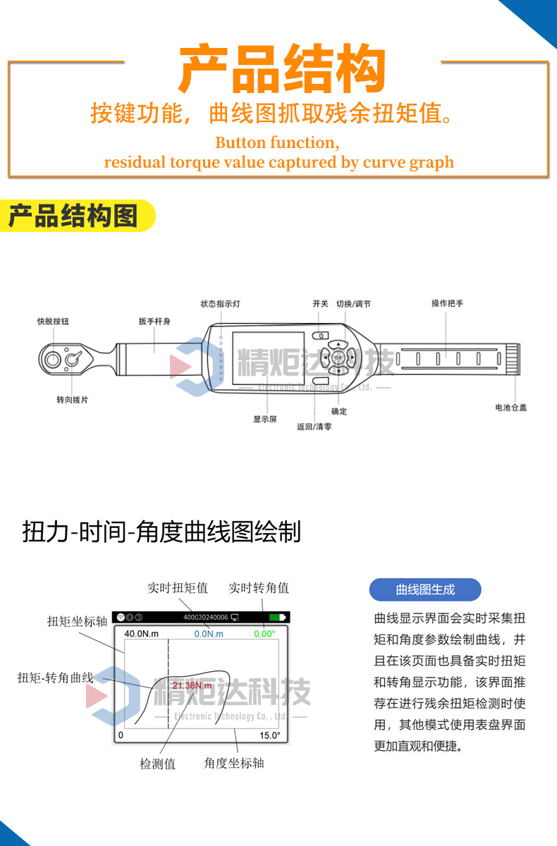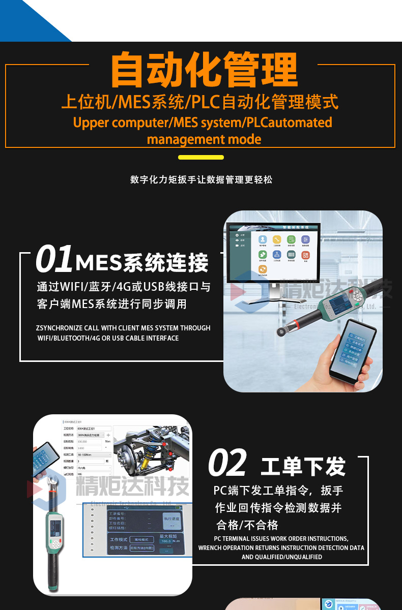 自动上传Excel表格数显扭矩扳手 MES系统传输数字化扭力扳手 无线智能力矩扳手JD-CSC成都精炬达厂家生产的具备高精度的传感装置,能够准确测量螺栓等连接件在安装后剩余的扭矩力。这对于评估连接件的紧固状态至关重要,可有效避免因扭矩不足或过大导致的松动、损坏等问题。在汽车发动机、底盘等关键部位的螺栓紧固过程中,使
